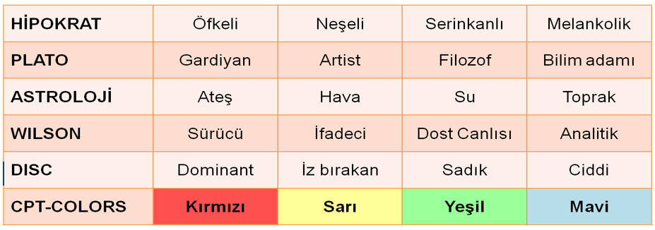 Görüleceği gibi asırlar boyunca yapılan gözlemler ışığında geliştirilen yorumlar büyük benzerlik taşımaktadır. Bu durum, farklı dönem, farklı sosyal ve kültürel çevre yapılarına rağmen insanın bazı temel kişilik özelliklerinin belirli bir sınıflamayla tanımlanabilmesinin mümkün olabileceğini göstermektedir.